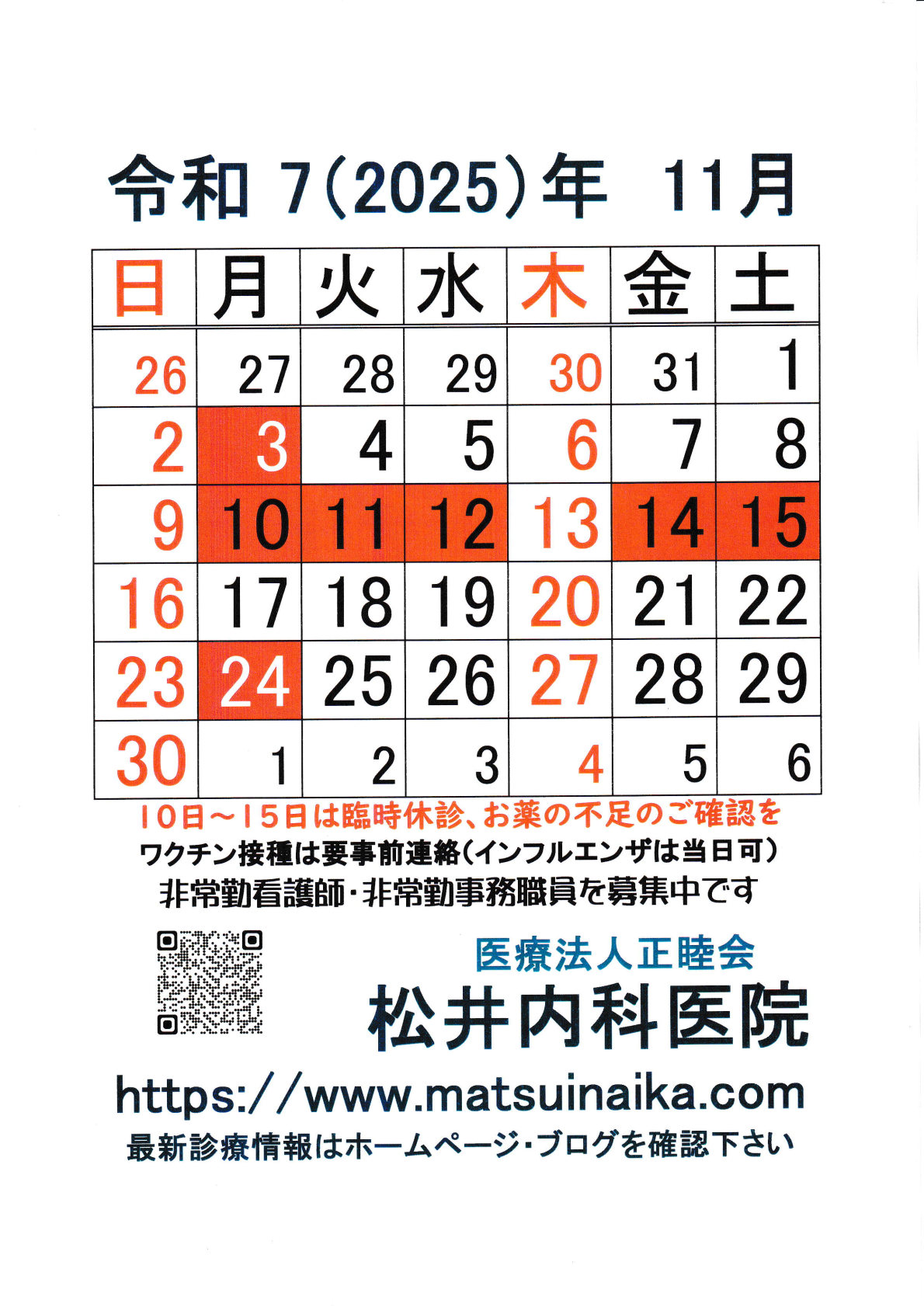 11月・12月 予定(未定ですが、休診になる可能性のある日です)